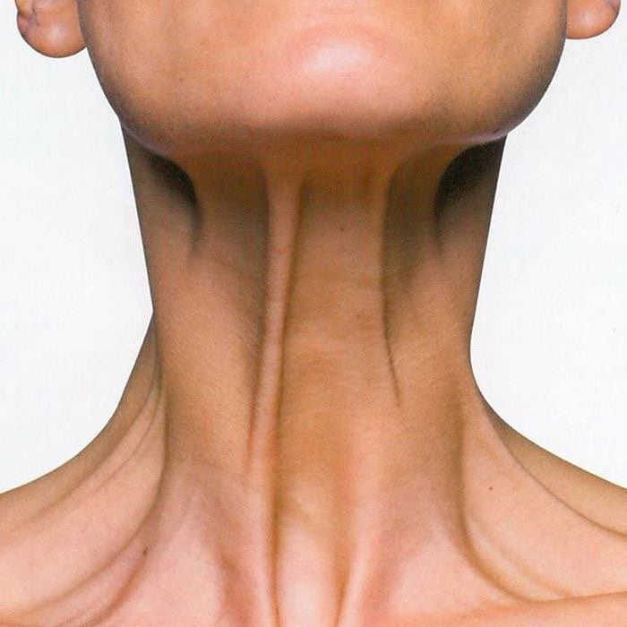 Avec l’âge, des cordons verticaux peuvent apparaître sous l’effet d’une hypertonie du platysma, le muscle peaucier du cou étroitement lié à la peau. Ces reliefs marqués durcissent le profil et accentuent les signes du temps.