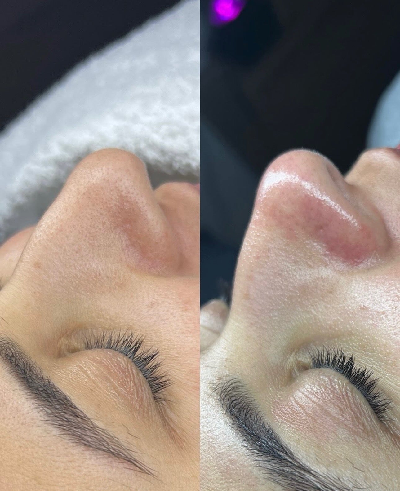 impuretés sont éliminées tout en infusant simultanément des sérums riches en acide hyaluronique, peptides, antioxydants et vitamines. Le résultat est immédiat : une peau plus nette, éclatante et intensément hydratée dès la première séance.